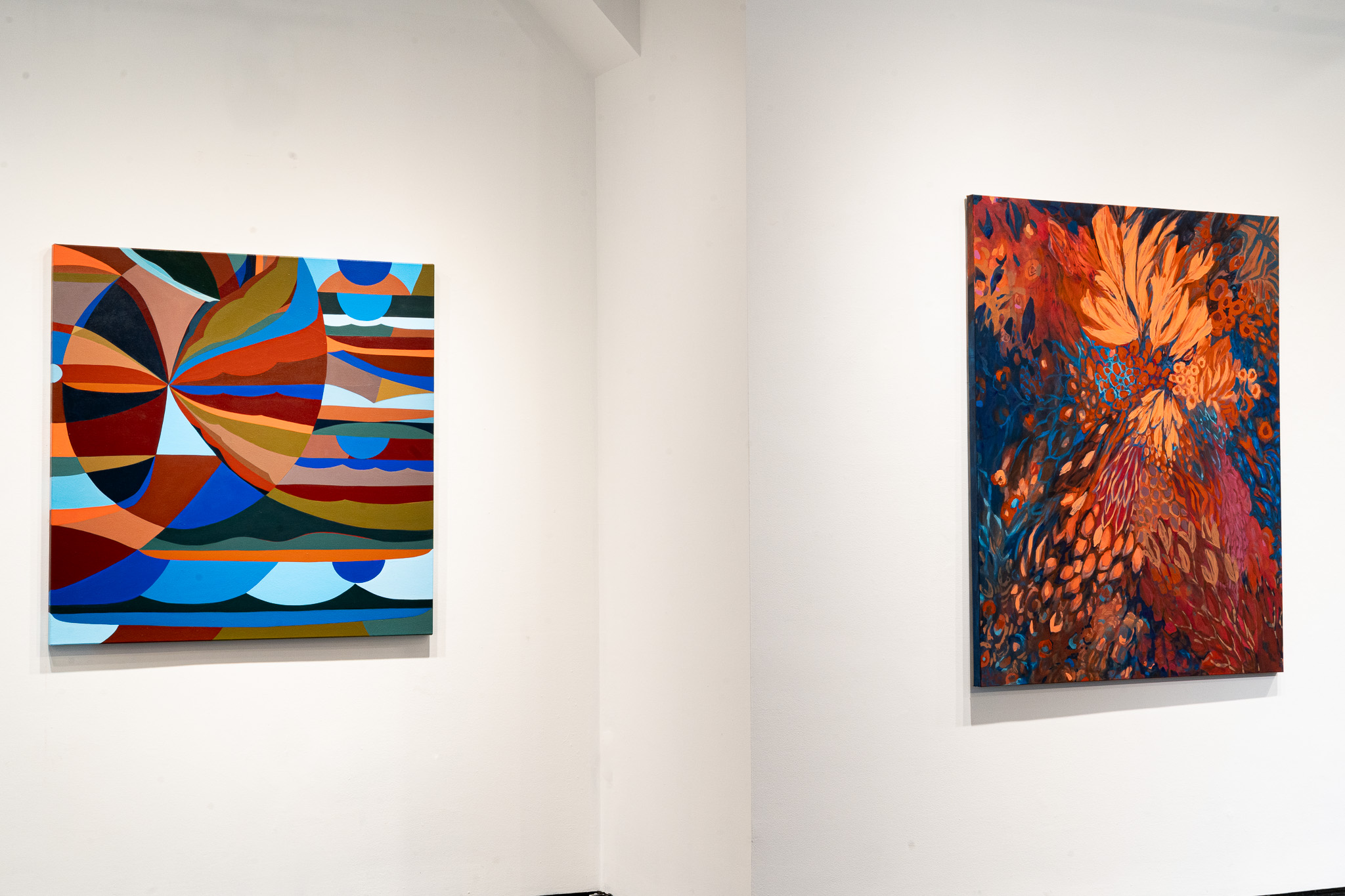 The works in the exhibition investigate organic forms and imagined environments through various modes of abstraction. Pools and plants, waves and wells, stones and splashes are revealed through each artists’ expressive mark-making, acute attention to detail, and innovative use of materials. Collectively, the works accomplish a sort of thaumaturgy, evoking an impossible landscape, a mirage that doesn’t dissipate as you draw closer.