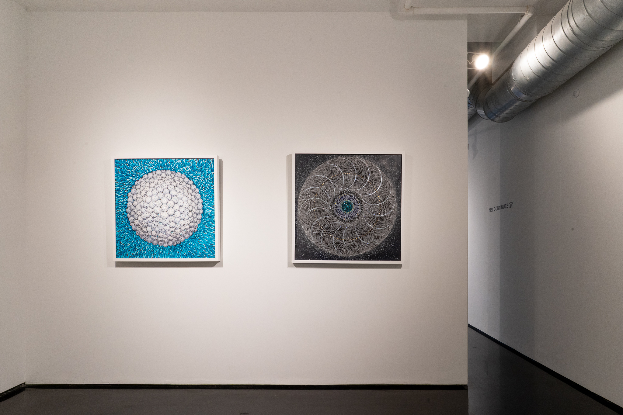 Both methods visually consider the complexities of identity, place-keeping and record-keeping; challenging systems of forced categorization, disrupting attempted erasure, and prioritizing restoration. The works have a transcendental bent—the artist literally cuts portals into her material containers, rupturing the picture plane, unveiling networks of data and imagery—leading the viewer beyond the frame: out of facile, reductive categories and into an engagement with history, with the cosmos, and with their own place in it. Space Scape is a record of this act of remembering, of strategizing, of improvisation, ingenuity and futurity.
